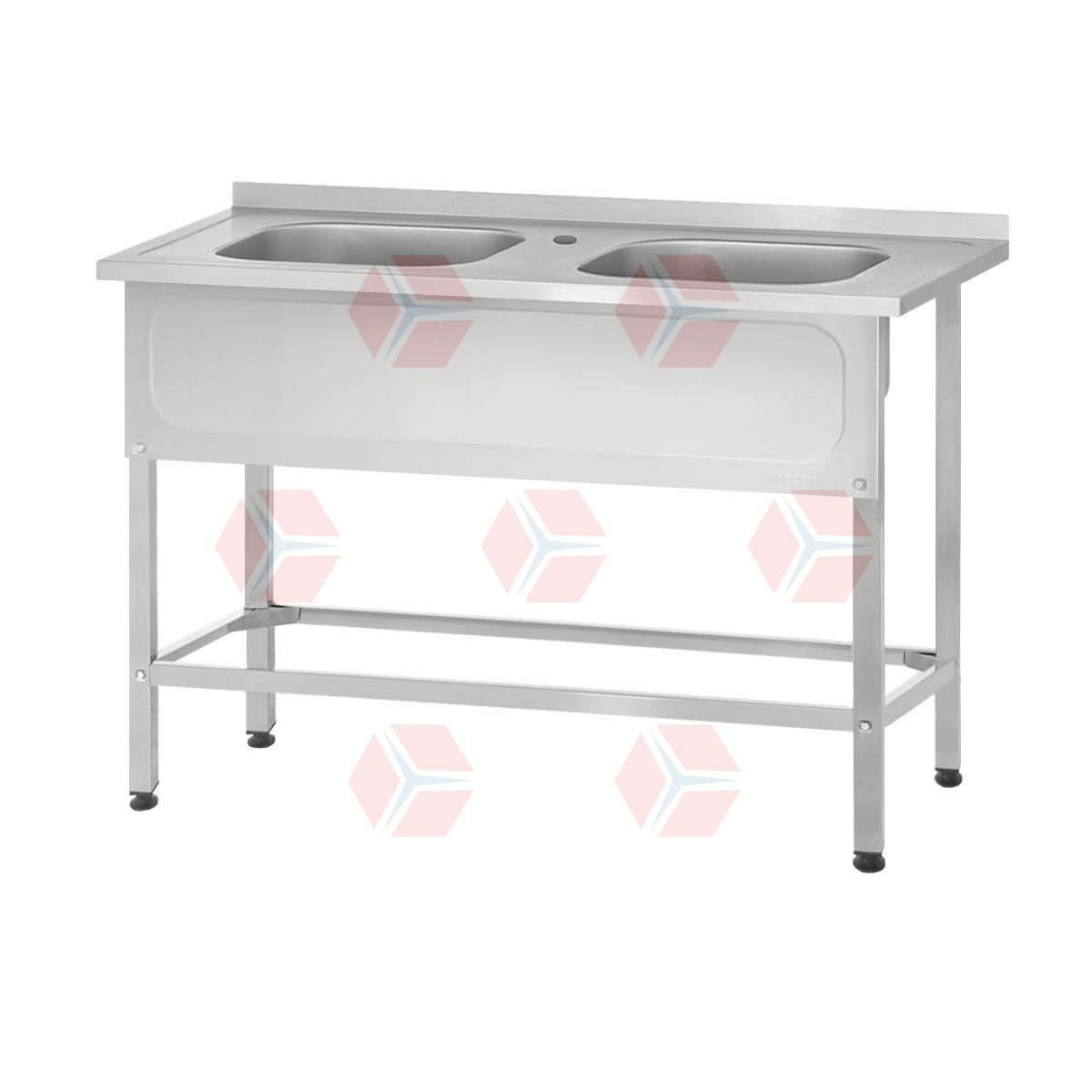 Ванна моечная ВМЦн - 1400*600*860 "Norma Inox", 2 м/о 500*400*250, борт, отв. д/смесит., экран (ножка профильная, тр. 40*40)