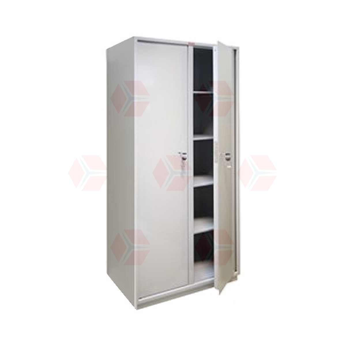 Шкаф представляет собой цельносварную металлическую конструкцию прямоугольной формы, разделенную вертикальной перегородкой на 2 независимых отделения, запираемых собственной дверью. В каждом отделении располагается по 4 полки. Корпус и двери шкафа изготовлены из стального листа толщиной 1,2 мм. Двери изнутри усилены панелью коробчатого сечения из стального листа толщиной 0,8 мм. В дверях шкафа КБС-10н установлен врезной сувальдный замок. Шкаф имеет подиум (подставку) высотой 47 мм для возможности размещения его вплотную к стене. Петли шкафа – внутренние. Окраска — полимерное порошковое покрытие, цвет серый.