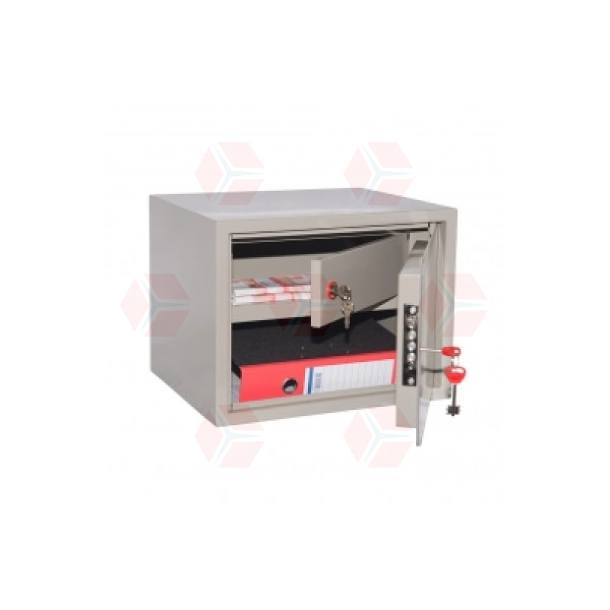 Шкаф представляет собой цельносварную металлическую конструкцию прямоугольной формы, соединение элементов которой выполнены методом сварки сплошным швом по контуру прилегания элементов. Корпус и дверь шкафа изготовлены из стального листа толщиной 1,5мм. Дверь изнутри усилена панелью коробчатого сечения из стального листа толщиной 0,8 мм. В двери шкафа установлен врезной 8-ми сувальдный замок фирмы «ПРО САМ» (Россия). В шкафу КБС-02т располагается отсек ограниченного доступа (трейзер), запираемый на замок «почтового» типа. Петли шкафа – внутренние. Окраска — полимерное порошковое покрытие, цвет серый.
