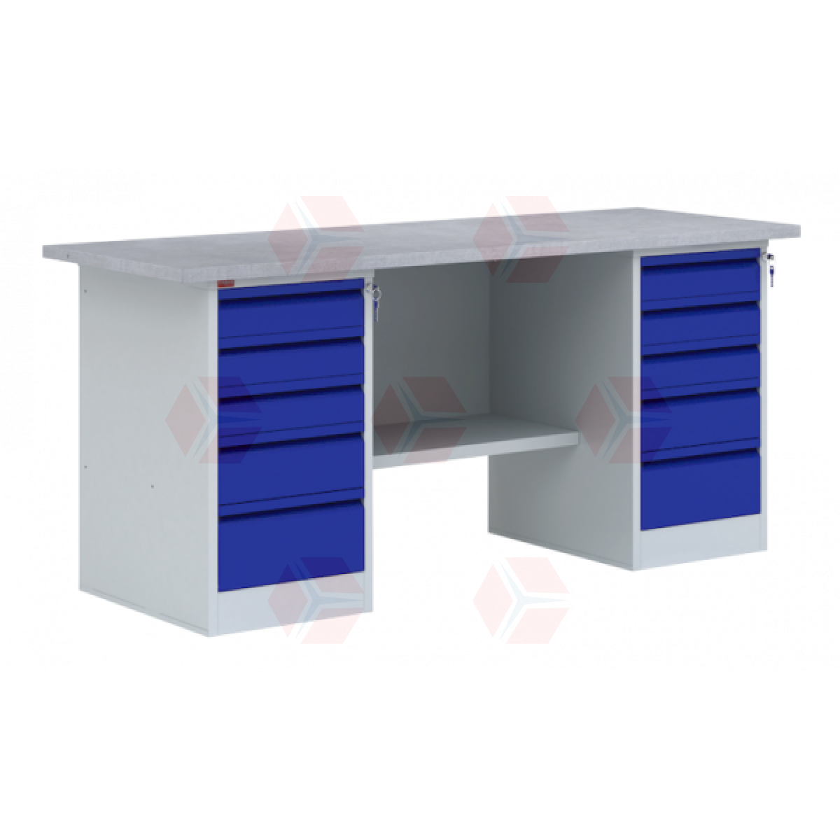 • При ширине 1600 мм - столешница СТ-1.6, две тумбы Т-2Т (с телескопическими направляющими), комплект: полка, стенка К-3/1.6
